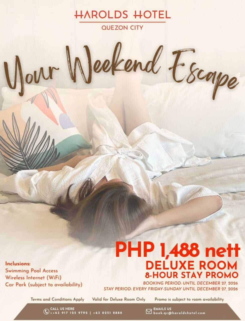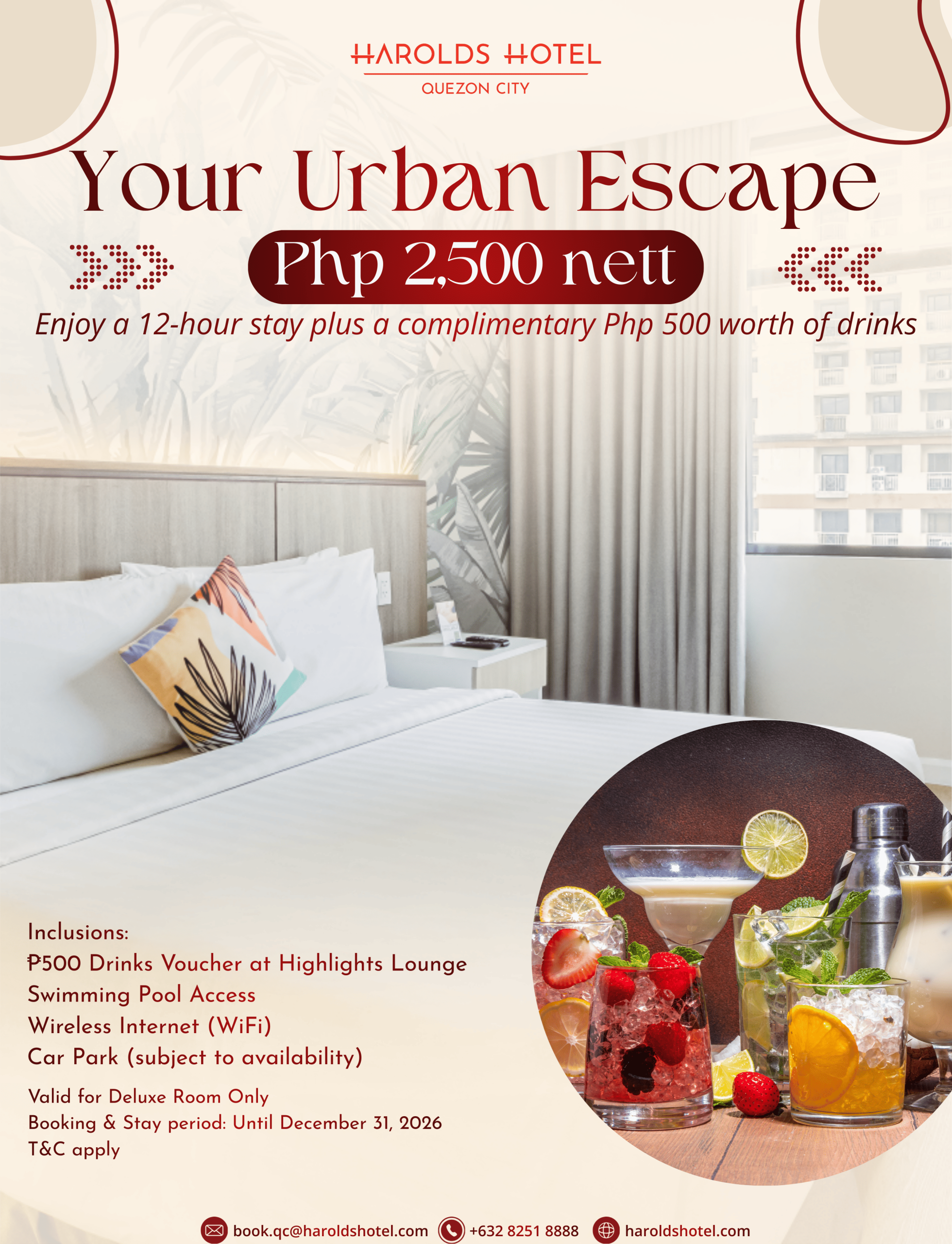 Slow down and savor the weekend with an extended deluxe room stay. Designed for restful breaks and casual staycations, Your Weekend Escape offers comfort, convenience, and essential amenities—ideal for recharging without leaving the city.