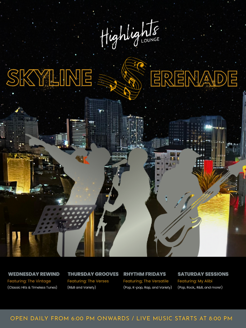 Let the music rise as the city lights glow. Unwind above the city lights with live bands, cool vibes, and Cebu’s most scenic rooftop backdrop.