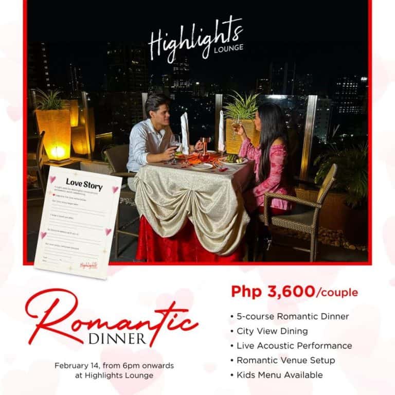 Celebrate Valentine with an intimate evening above the city, under the stars at Highlights Lounge.